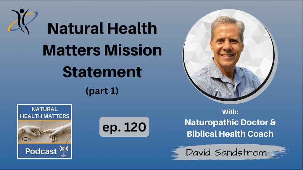So here's an important statement. Are you ready for it? Drumroll please. It's my contention that God wants us healthy. There. I said, when I say that to some of my Christian friends, I sometimes see some raised eyebrows. And they say, Dave, are you? Are you advocating some type of prosperity gospel or some type of name and claim it theology? No, not at all. And I'm going to have more to say on this later in the episode, but I'm advocating the exact opposite of naming and claim it. And I encourage you again to hang in there to the end of the episode, because I'm going to be touching on that some more a little bit later on down the road. The Bible has a lot to say, on God's desire for health and well being. I'm going to be sharing a lot of verses here. But let's for now, let's just consider this 3d John, one, two, beloved, I pray that in all respects, you may prosper and be in good health. So God wants us healthy. I'm going to have a lot more verses on that later. Welcome to the Natural Health Matters podcast where it's all about maximizing your health potential, so that you can look and feel your best at any age. I'm your host, David Sandstrom, naturopathic doctor, and biblical health coach, and this is episode number 120.